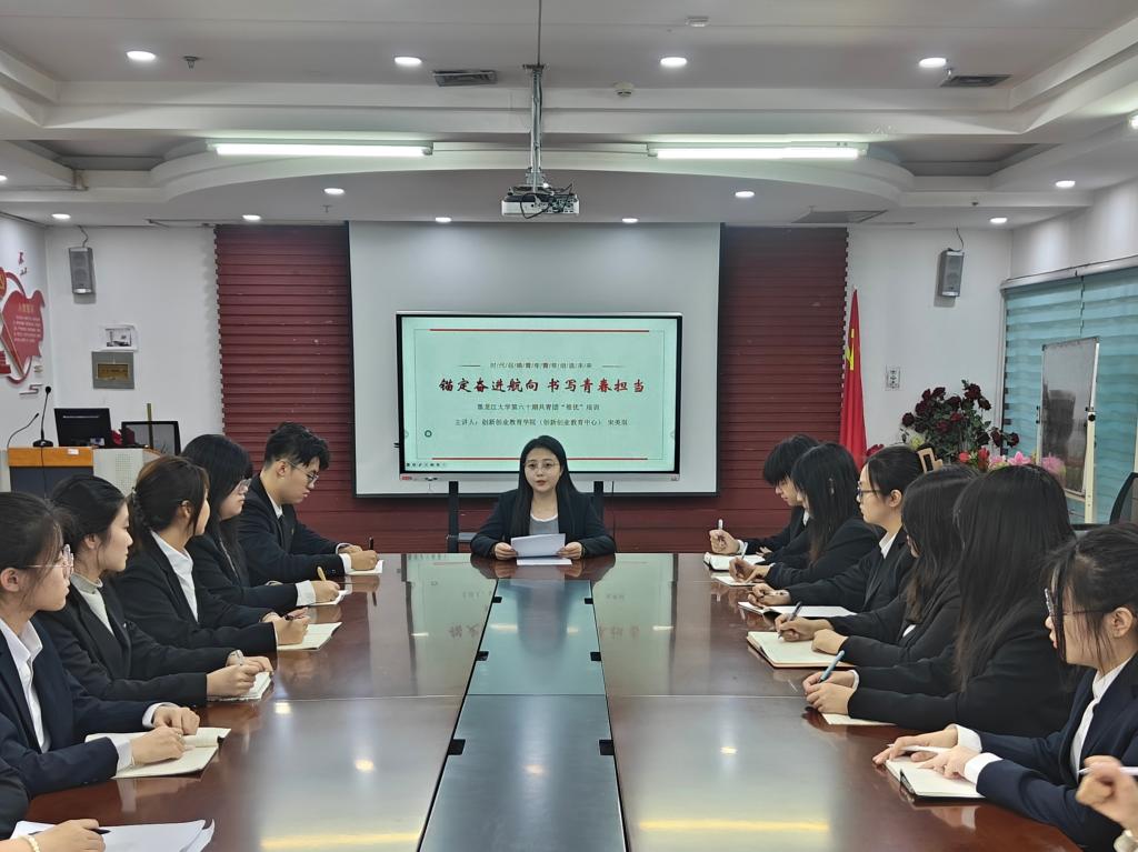 为进一步深入学习宣传贯彻党的二十大和二十届三中全会精神,引领团员青年认真学习领会习近平新时代中国特色社会主义思想,进一步提升我院团员青年的思想理论水平和政治素养,保持和增强共青团的政治性、先进性、群众性,根据校团委《关于举办黑龙江大学第六十期共青团“推优”培训班的通知》相关要求,创新创业教育学院(创新创业教育中心)于10月11日在“创翼”一站式学生社区举办第六十期共青团“推优”培训。本次培训由学院团委书记宋美琪担任主讲,培训班全体学员参与。